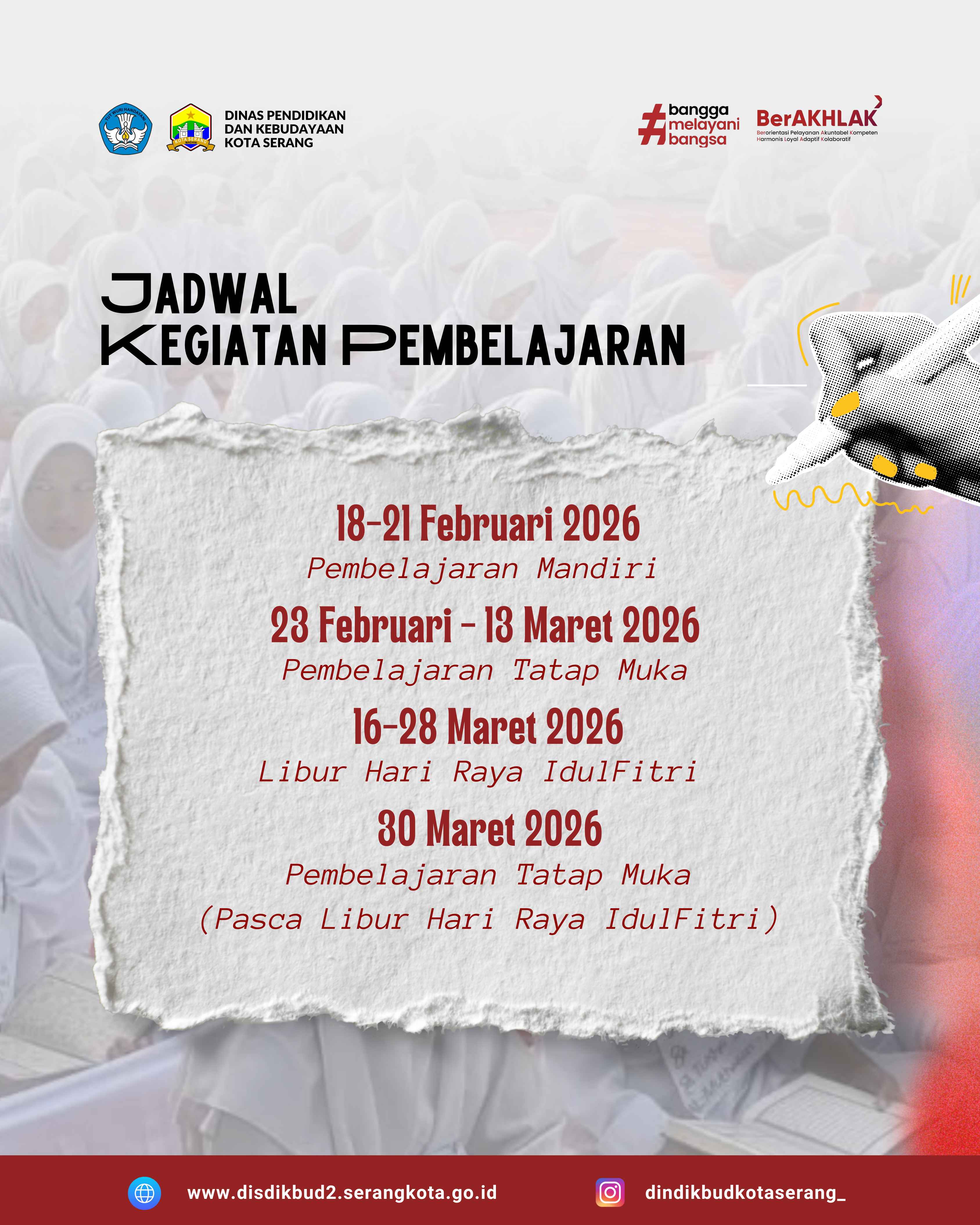 Rabu, 4 Februari 2026 Dinas Pendidikan Kota Serang melaksanakan Rapat Rutin Ikatan Guru Taman Kanak-Kanak Indonesia–Persatuan Guru Republik Indonesia (IGTKI-PGRI)...